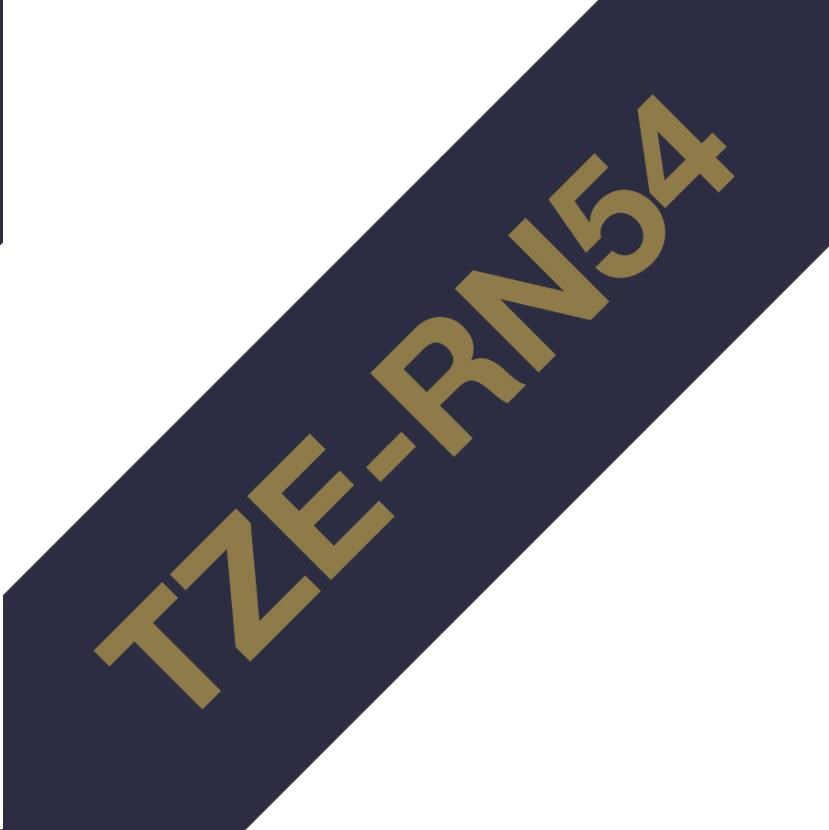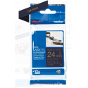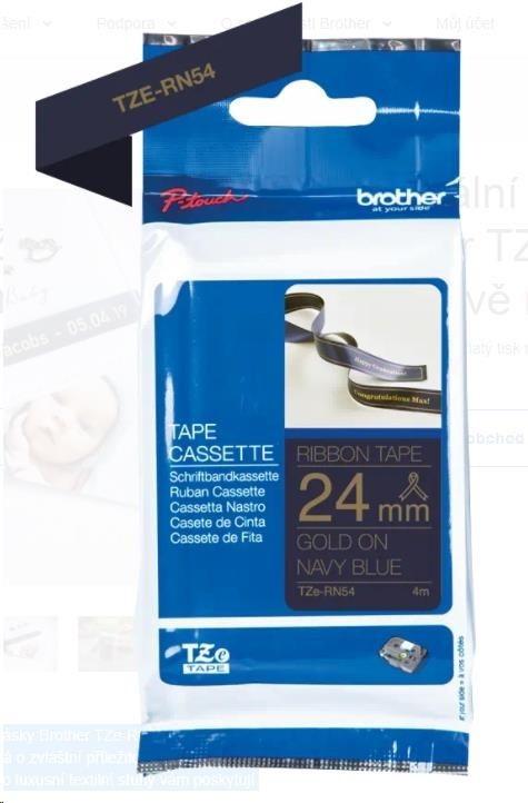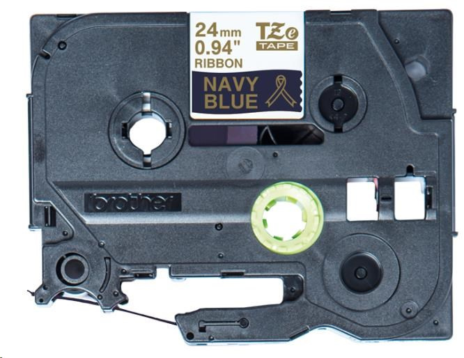 Popis BROTHER TZE-RN54 - kazeta TZ šířky 24mm, TEXTILNÍ páska 4m- pro tvorbu dárků - NELEPÍCÍ - MODRÁ PÁSKA, ZLATÝ POTISK gold