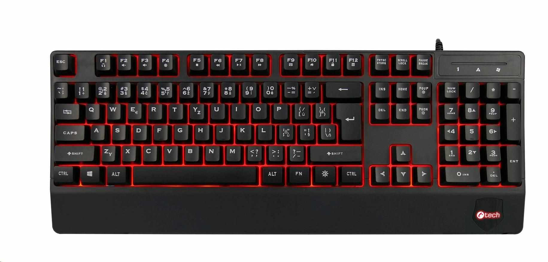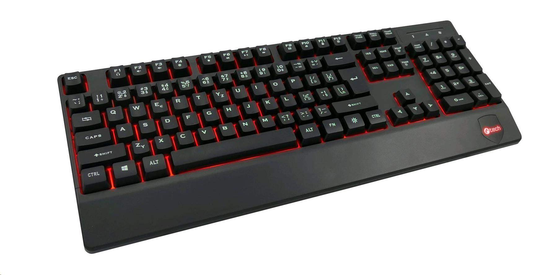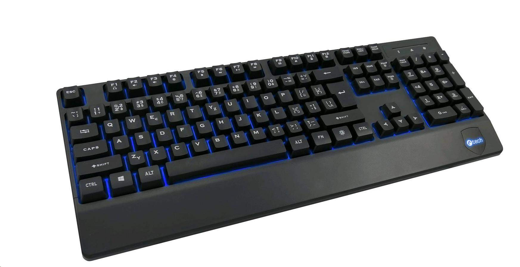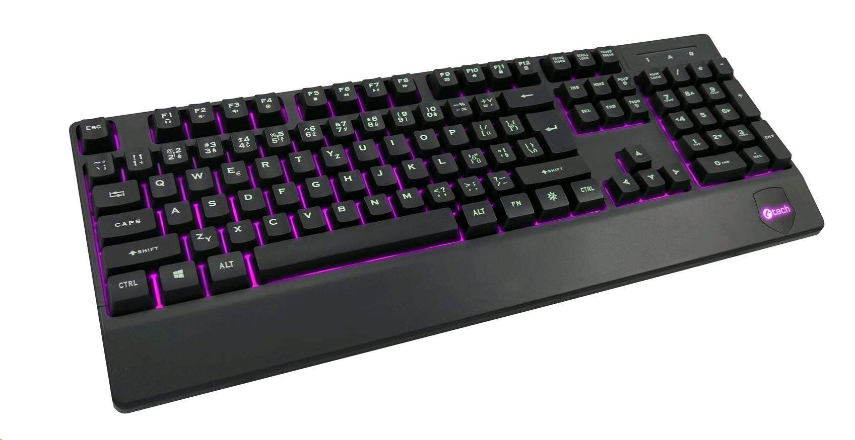 Akční nabídky na váš e-mailKlávesnice C-TECH KB-104BK, USB, 3 barvy podsvícení, černá, CZ/SK