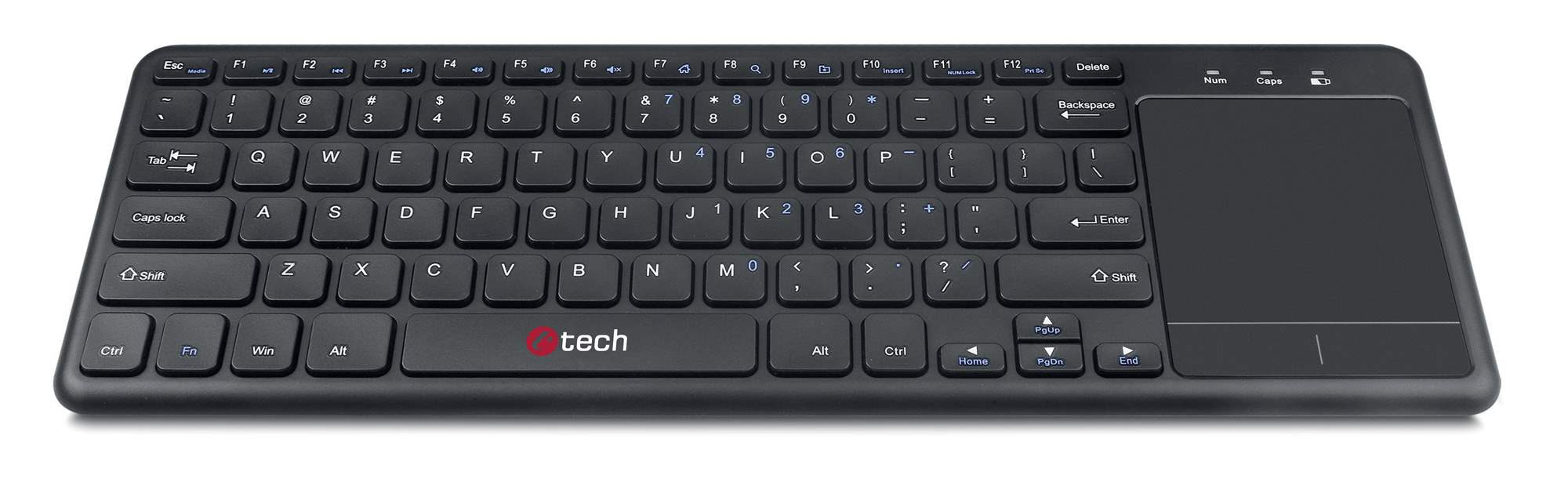 Akční nabídky na váš e-mailBezdrátová klávesnice s touchpadem C-TECH WLTK-01 je ideálním řešením pro Váš obývací pokoj. Klávesnice je kompatibilní s většinou smartTV, Android, Chrome OS a Windows, čili Vám garantuje velmi pohodlnou obsluhu všech Vašich multimediálních zařízení. Klávesnice má plnou českou, i slovenskou lokalizaci. Pro ještě větsí pohodlí při užívání WLTK-01 Vám poslouží sada multimediálních kláves, multi-touch touchpad, kompaktní rozměry a malá hmotnost klávesnice.