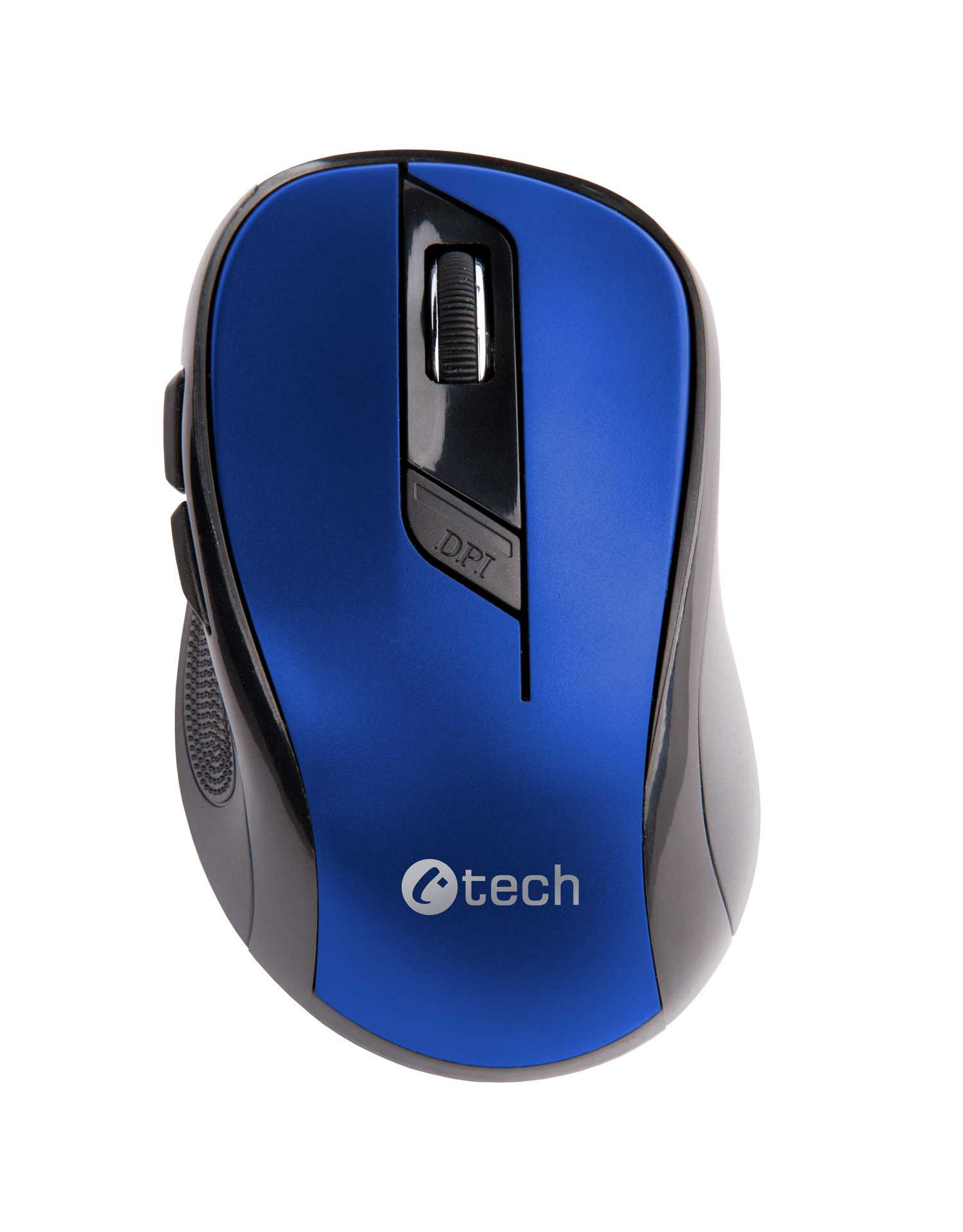 C-TECH myš WLM-02, černo-modrá, bezdrátová, 1600DPI, 6 tlačítek, USB nano receiver