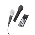 V balení najdete - drátový i bezdrátový mikrofon, dálkový ovladač a napájecí kabel