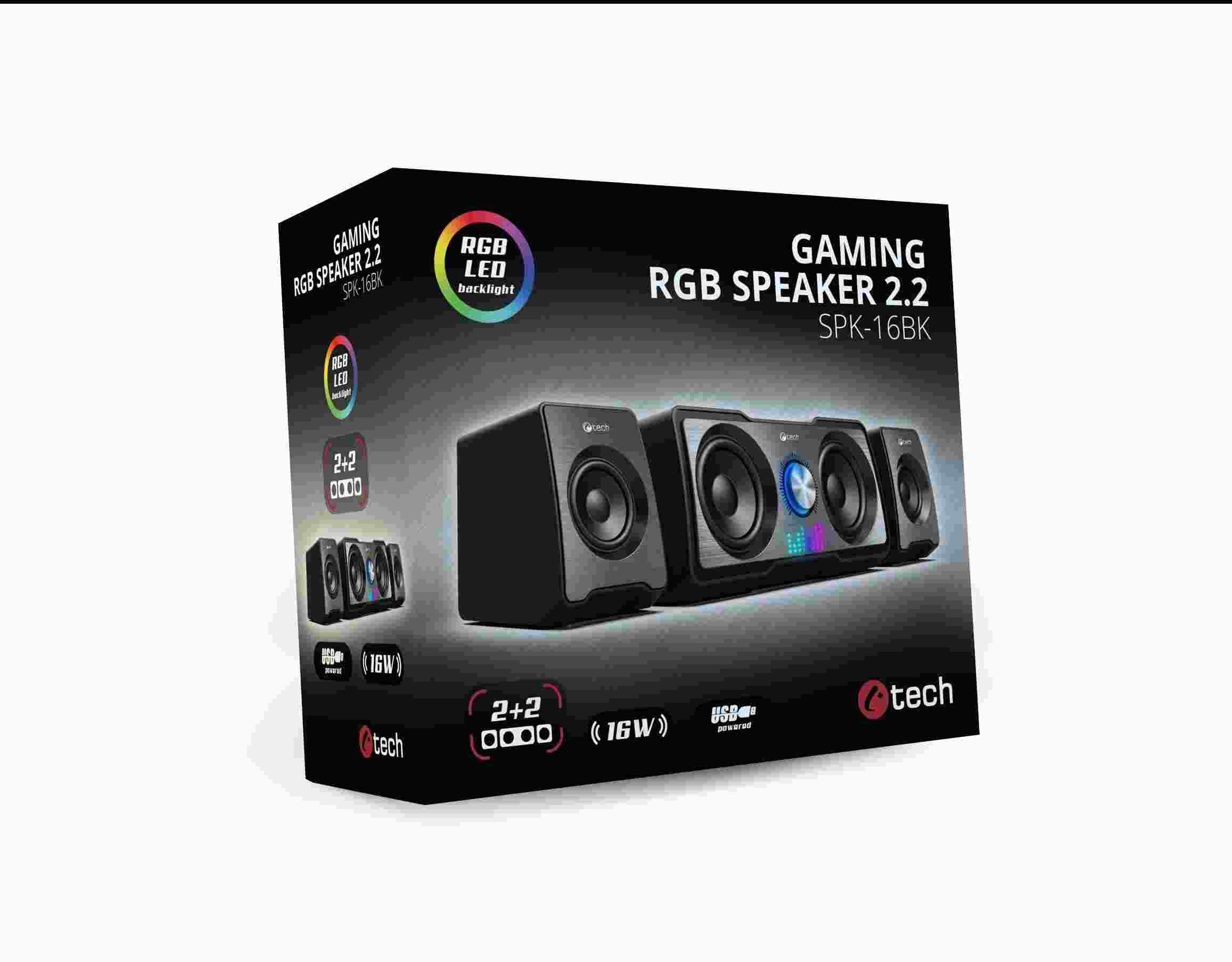 C-TECH reproduktory SPK-16, 2.2, RGB, černá