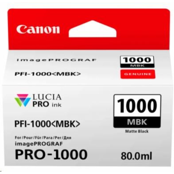 Canon CARTRIDGE PFI-1000 matná černá pro ImagePROGRAF PRO-1000 (1 600 str.).
