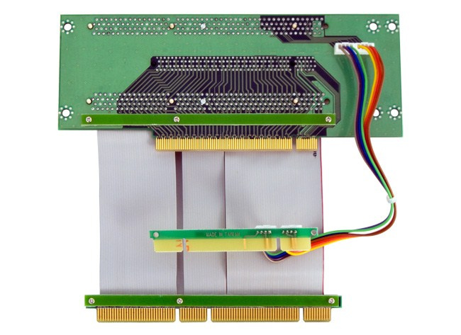 The Riser card has one PCI-E 16x slot and two 3,3V 64-bit PCI-X slots, PCI-X extension cable, PCI signal cable
