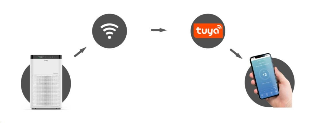 Model GARNI 15T OneCare má vestavěný WiFi modul a podporuje platformu pro internet věcí (IOT) Tuya. Přes mobilní aplikaci Tuya Smart (lokalizováno mimo jiné také do českého jazyka) nebo Smart Life lze prohlížet naměřené hodnoty kvality vzduchu ve vnitřních prostorách a ovládat její funkce. Na základě naměřených hodnot jinými zařízeními podporujícími platformu Tuya, např. chytrým měřičem kvality vzduchu GARNI 210T OneCare, lze plně automatizovat zapínání a vypínání čističky vzduchu a zajistit tak optimální kvalitu vzduchu v daném prostředí.