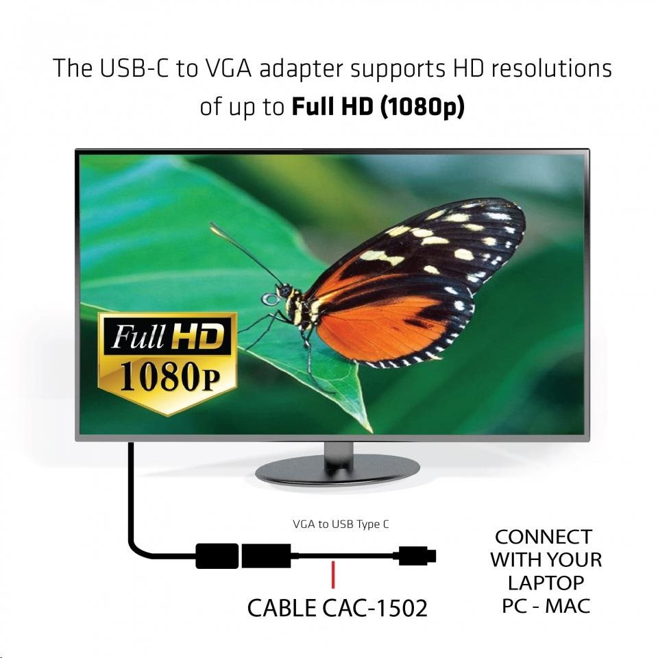 Popis Club3D Adaptér aktivní USB 3.1 typ C na VGA (M/F), 15cm