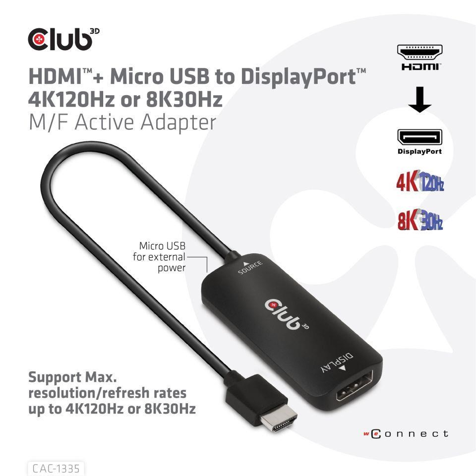 Akční nabídky na váš e-mailThe Club 3D CAC-1335 is the perfect solution to connect to any DisplayPort™ 8K30Hz or 4K120Hz ready displays from a HDMI™ source which does supports these resolutions/specifications.