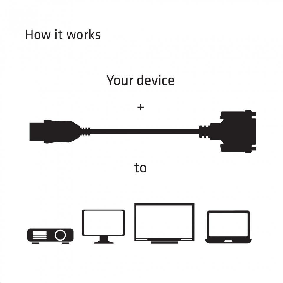 Club 3D CAC-HMD> DFD je převodník signálu HDMI ™ na DVI. Tento adaptér je nejjednodušší řešení pro připojení stolního počítače / notebooku / tabletu, který obsahuje rozhraní HDMI ™, k monitoru, projektoru nebo televizi s rozhraním DVI. Adaptér využívá prémiové komponenty pro zajištění nejvyššího kvality přenosu signálu a zároveň snadného použítí, což vede ke skvělému uživatelskému zážitku.