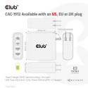 Akční nabídky na váš e-mailThe Club 3D CAC-1912 Travel Charger 100W GaN technology, Four port USB Type-A(2x) and -C(2x), Power Delivery(PD) 3.0 Support is a high-performance and fashionable design travel charger. It is equipped with four USB connectors that are for output interfaces, this product allows four devices to be charged at the same time. And the two USB Type-A ports can convey 2.4A each to total 3.4A. The USB Type-C port is specially designed for notebooks with a USB Type-C Host connection for a total 18W (5V/3A,9V/2A) output. The top USB Type-C port is specially designed for the USB Type-C notebooks with total 65W-100W (5~15V/3A,20V/3.25A,20V/5A) output. The maximum power output for single USB Type-C port is 100W. It is suitable to charge mobile phones, tablets and laptops. The unique design makes your life simpler and easier.