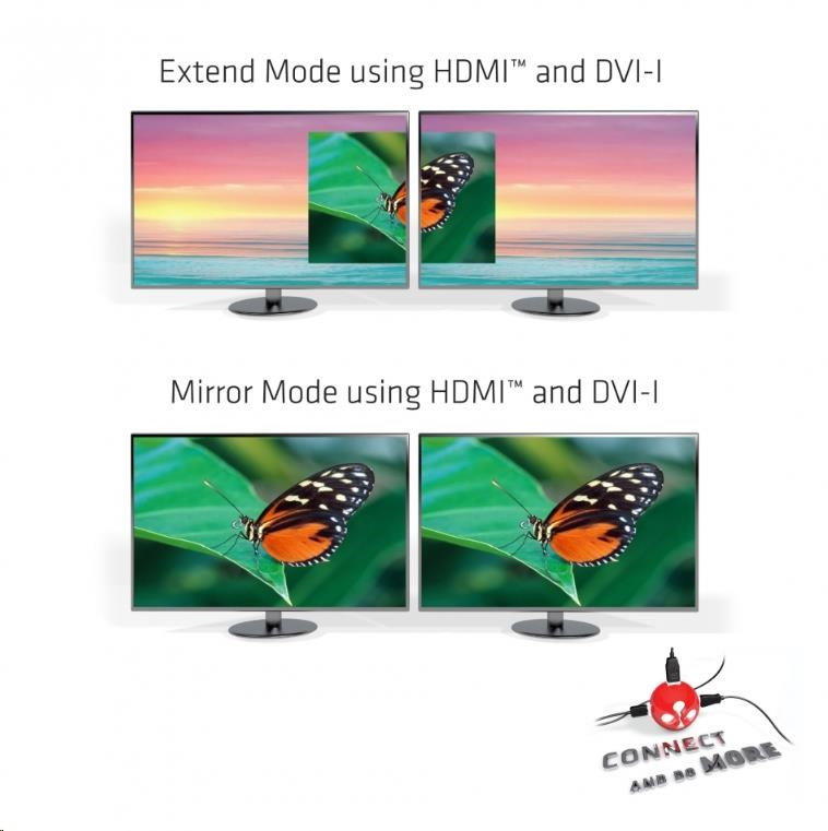 Podporované maximální rozlišení 2048x1152p (nebo 1920x1200p) @ 60Hz a pro nastavení dvou obrazovek: 2 x 2048x1152p (nebo 1920x1200p) @ 60Hz