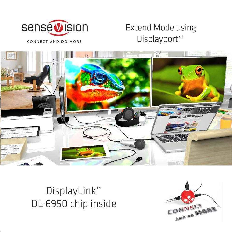 The SenseVision USB 3.1 Gen 1 Dual Display Docking Station has a convenient design and detachable stand, allowing it to be placed on your desk in horizontal- or vertical position. It's a productivity enhancing tool for any power user working in a (semi) professional environment.