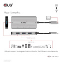 The Club 3D CSV-1547 is an USB Gen2 Type-C to four USB Type-A ports hub, which adds four common USB Type-A ports to your USB Type-C 10G enabled device for Data and Charging. It can work on any Type-C host ( PC, notebook, tablet, Mobile phone,etc). Works with all major Operating Systems.