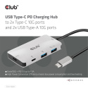 Akční nabídky na váš e-mailThe Club 3D CSV-1543 is an USB Gen2 Type-C PD Charging Hub to 2x Type-C 10G ports and 2x USB Type-A 10G ports.The two USB Type-A ports are designed for transmitting data and one of the two USB Type-A ports can provide 1.5A charging for the connected USB Type-A devices (mobile phones, tablets, U-disk, etc). One of the two USB Type-C ports is designed for transmitting data and charging for the connected USB Type-C device, the other USB Type-C port supports both data and PD3.0 charging. It can work on any USB Type-C host (PC, notebook, tablet, Mobile phone, etc) that supports DP Alt mode.