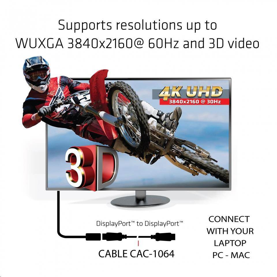 Kabel DisplayPort ™ Ver. 1.2 Vám umožní připojit herní PC nebo notebook s konektorem DisplayPort ™ k monitoru s vysokým rozlišením (až UHD) nebo k jinému zařízení s podporou DisplayPort ™. Obsahuje konektory vybavené zámky, které zajišťují bezpečné a spolehlivé připojení.