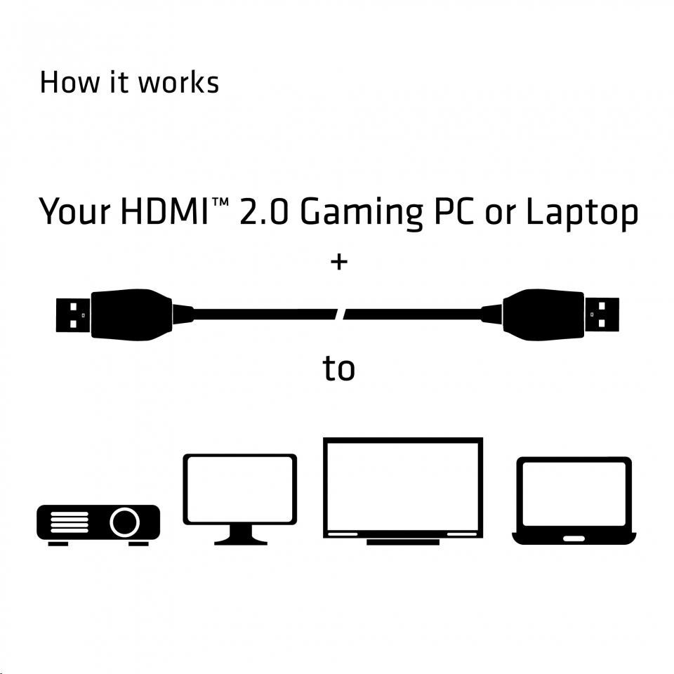 Kabel Club 3D Premium High Speed HDMI ™ 2.0 4K60Hz UHD umožňuje propojení vašeho herního PC nebo notebooku s rozhraním HDMI ™ 2.0 k UHD monitoru nebo k jinému zařízení s technologií HDMI ™ 2.0. Plně podporuje specifikaci "Premium High Speed HDMI ™ s rozhraním Ethernet", která zajišťuje podporu videa až ve 4K UHD 3840x2160p při 60Hz, včetně audio a datových toky. Zahrnuje vyhrazený datový kanál umožňující vysokorychlostní síťové připojení až do rychlosti 100 Mb/s.