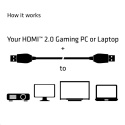 Kabel 3D Club HDMI ™ 2.0 High Speed 4K UHD umožňuje propojení vašeho herního PC nebo notebooku s technologií HDMI ™ 2.0 k UHD monitoru nebo k jinému zařízení s podporou rozhraní HDMI ™ 2.0. Plně podporuje specifikaci ‘HDMI High Speed s rozhraním Ethernet‘, která zajišťuje podporu videa až ve 4K UHD 3840x2160p při 60Hz, včetně audio a datových toky. Zahrnuje vyhrazený datový kanál umožňující vysokorychlostní síťové připojení až do rychlosti 100 Mb/s.