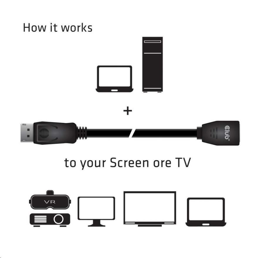 | Club 3D DisplayPort™ 1.4 Extension Cable 8K60Hz DSC 1.2 HBR3 HDR Bidirectional Male/Female 3m/ 9.84ft 28AWG |