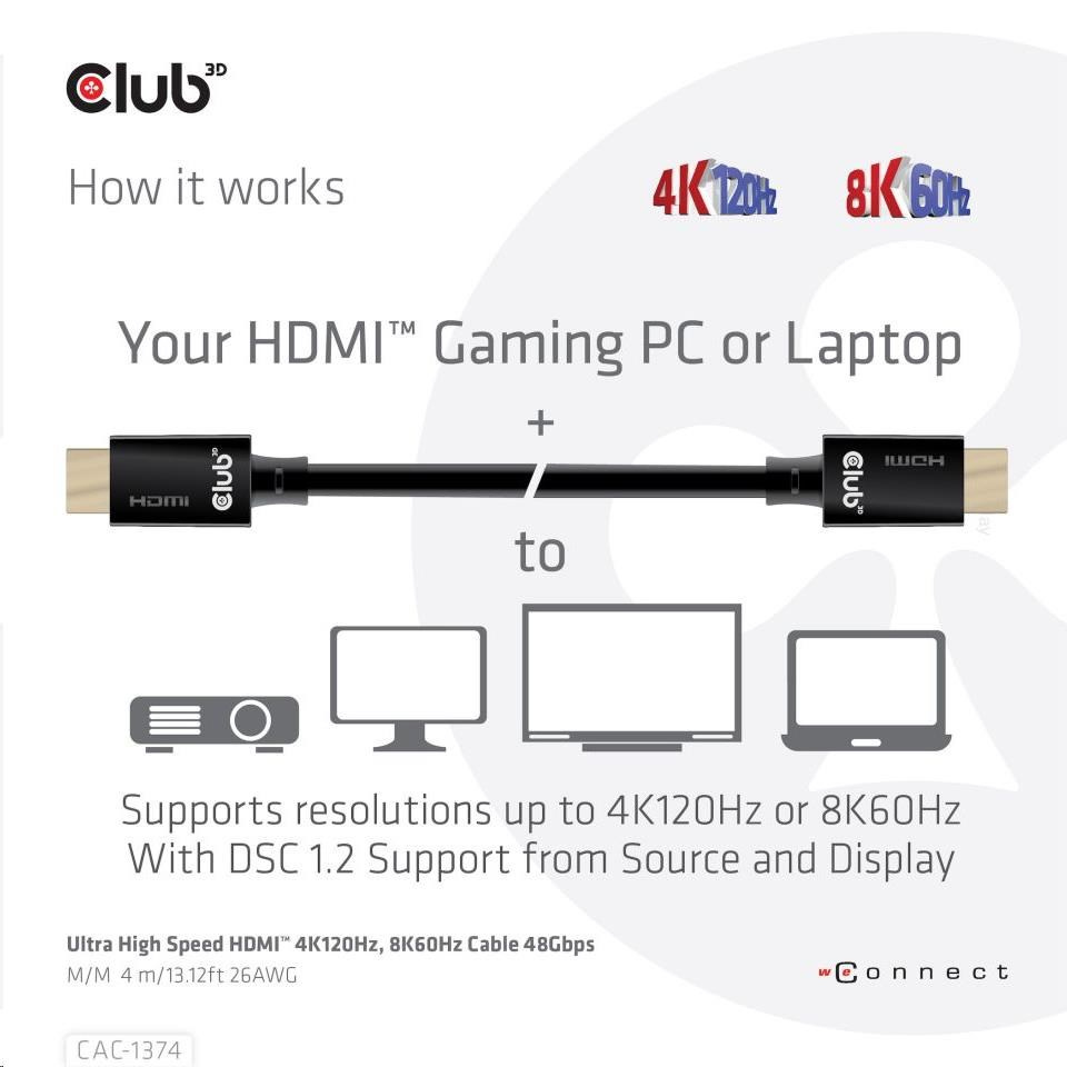 Akční nabídky na váš e-mailThe Club 3D CAC-1374 Ultra High Speed HDMI™2.1 Cable is built to handle the highest quality video- and audio- signals.