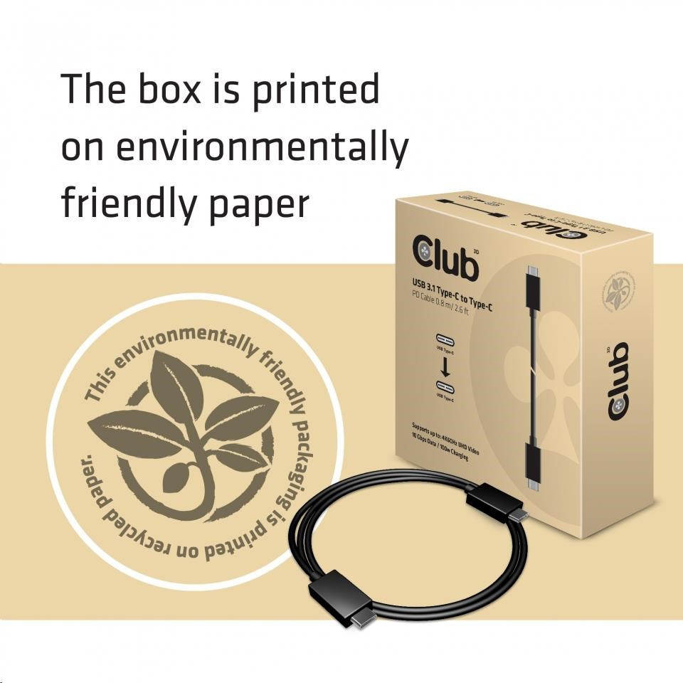 Popis Club3D Kabel USB 3.1 typ C Gen2 4K60Hz UHD Power Delivery 100W, (M/M), 80cm