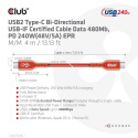 Akční nabídky na váš e-mailThe Club 3D CAC-1515 USB2.0 Type-C Bi-Directional USB-IF Certified Cable, Data 480Mb, PD 240W(48V/5A) EPR, Extended Power Range M/M 4 m / 13.13 ft connects your Notebook, Tablet or Phone with USB Type-C output to your favorite existing Peripherals, Accessories and Chargers. It enables Data and Power over a single cable and both ways. This cable supports USB2.0 data up to 480Mbps and up to 240Watt(48V/5A) output for Downstream charging or powering your Notebook, Tablet or Smartphone.