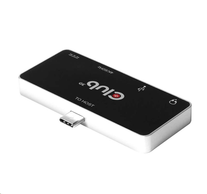 CSV-1591 - The Club 3D Hub is a 4-in-1 USB Type-C hub with HDMI™, USB Type-A 2.0, 3.5mm audio and USB Type-C PD charging, the design perfectly suits all DP Alt-mode capable devices. With this hub, you can enjoy ultra high definition video of your host on big screen, enjoy fantastic music, transmit USB 2.0 data and connect USB Type-C PD Adapter to charge the host.