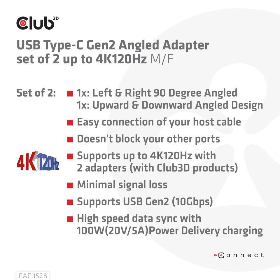 | In the box | CAC-1528 USB Type-C Gen2 Angled Adapter set of 2 up to 4K120Hz M/F |