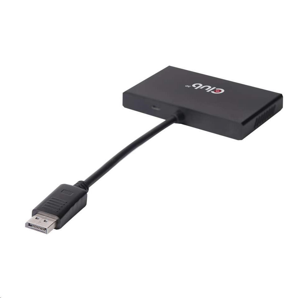 Popis Club3D Video hub MST (Multi Stream Transport) DisplayPort na 4x DisplayPort, USB napájení