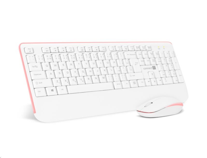 Akční nabídky na váš e-mailCONNECT IT Combo bezdrátová bílo-růžová klávesnice + myš, (+1x AAA +1x AA baterie zdarma), CZ + SK layout