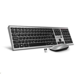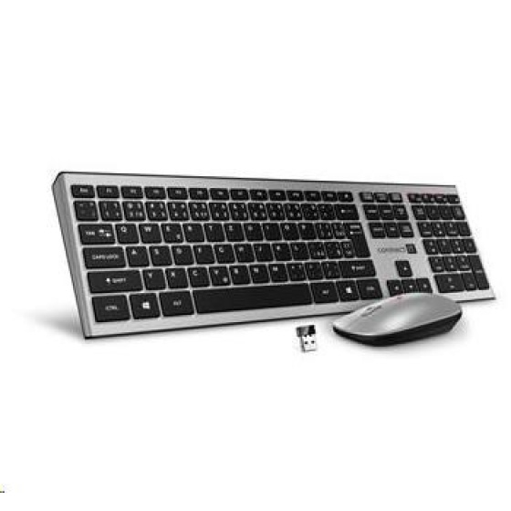 Akční nabídky na váš e-mailBezdrátová klávesnice a optická myš ve stříbrném designu je ideální kombinace počítačového příslušenství, které si můžete vzít s sebou domů či do práce. Klávesnice nabízí 6 multimediálních kláves a myš s rozlišením 1200 DPI tak skvěle doplňuje jednoduchý a funkční set. Toto kvalitní příslušenství lehce připojíte k vašemu notebooku či počítači přes nano USB přijímač, který má dosah až 10 metrů. Samozřejmostí je velmi snadná instalace, díky Plug & Play.