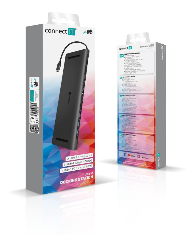 Akční nabídky na váš e-mailPrakticky tvarovaná USB-C dokovací stanice "Multi11in1" pro připojení až 11 periferií (2x USB-C, 2x HDMI, 3x USB-A, 3.5 mm jack, RJ45 Gigabit Ethernet. SD karta, MicroSD karta).