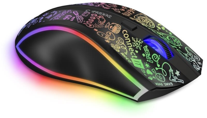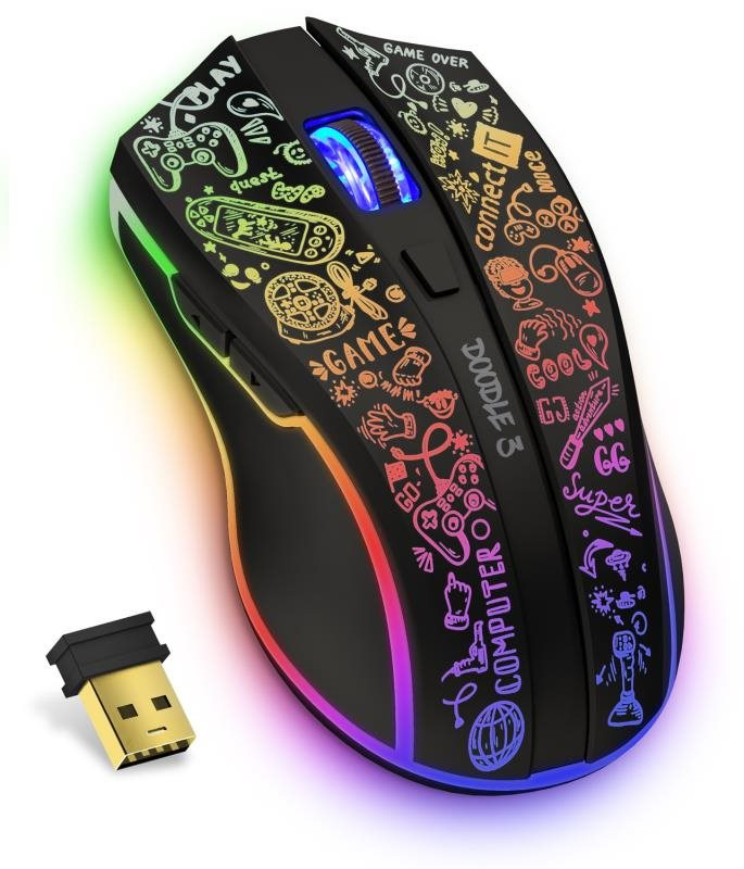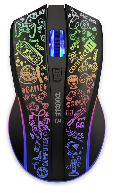 Akční nabídky na váš e-mailProfesionální bezdrátová gamingová myš DOODLE 3 pro hráče počítačových her s Rainbow podsvícením. Dodávaný SW s četnými nastaveními podporuje uživatelská makra, 5 uživatelských profilů a 6 programovatelných tlačítek včetně posuvného kolečka. Precizní optický senzor má nastavitelnou citlivost až na 4800 DPI. Myš využívá technologie jako povrchový RubberGrip pro eliminaci klouzavosti dlaně, UltraSlides Black pojezdy pro maximální možnou rychlost na podložce. Nechybí ani technologie AutoPowerSave šetřící kapacitu baterie. Software je zdarma ke stažení na stránkách www.connectit-europe.com. Samožřejmostí je pozlacený USB Nano přijímač a dodávaný nabíjecí kabel.