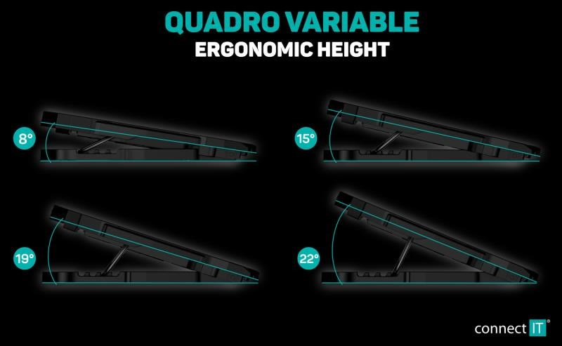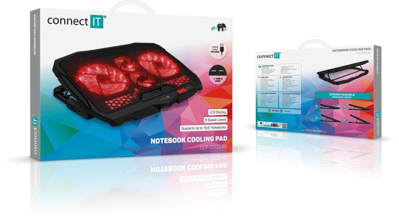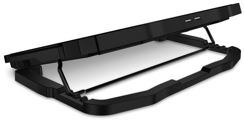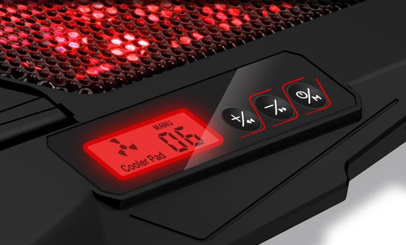 Akční nabídky na váš e-mailChladicí podložka pod notebook se čtyřmi šestirychlostními ventilátory, digitálním displejem, výškovým polohováním ve 4 úrovních a dvěma USB porty. Podložka zajišťuje jak odvod tepla z notebooku a jeho ventilačních otvorů, tak i přímé ochlazování pláště notebooku díky cirkulaci chladného vzduchu a celkově tak zvyšuje výkon notebooku. Je plně kompatibilní s notebooky až do velikosti 15,6" a díky kompaktním rozměrům je předurčena jak pro práci doma a v kanceláři, tak i pro cestování a časté přenášení. Ultratichý chod 4 ventilátorů vás nebude rušit ani při nejnáročnější práci vyžadující maximální soustředění. Výšková polohovatelnost ve 4 různých stupních vám zajišťuje maximální pohodlí i při delších pracovních či herních sezeních.