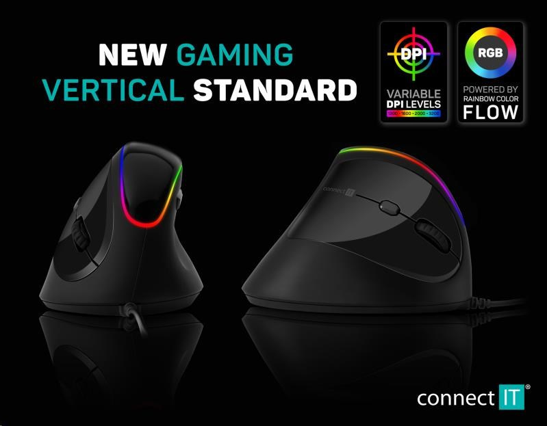 Akční nabídky na váš e-mailCONNECT IT GAME FOR HEALTH ergonomická vertikální myš, drátová, ČERNÁ