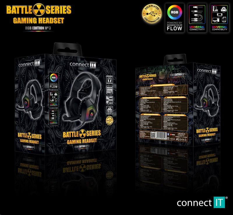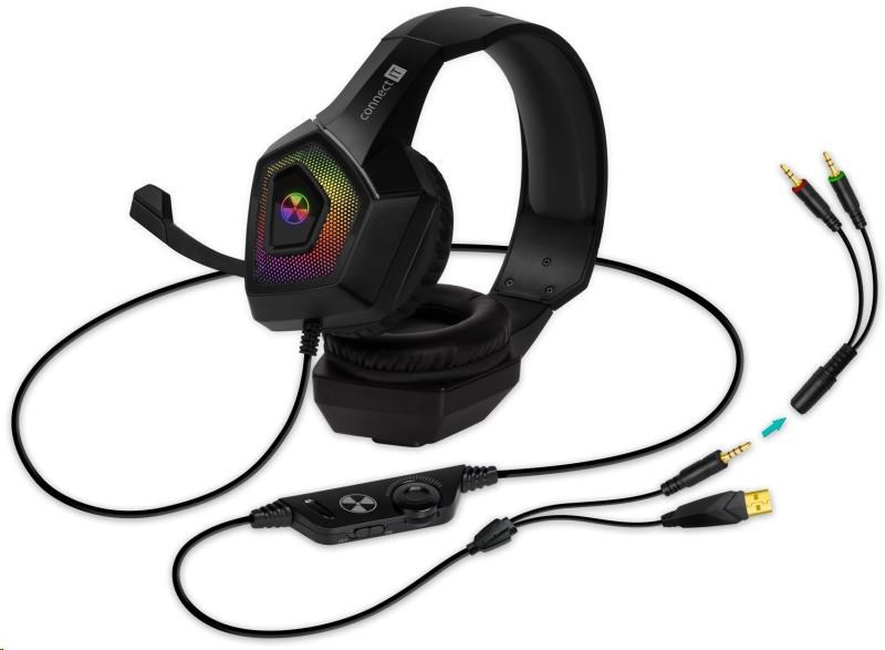 | Konektory | - pozlacený USB-A 2.0 (konektor pro podsvícení, neslouží pro přenos zvuku) - pozlacený Jack 3.5 mm (konektor sluchátek) - adaptér: Jack 3.5 mm (F) na 2x pozlacený Jack 3.5 mm (konektor sluchátek a mikrofonu) |