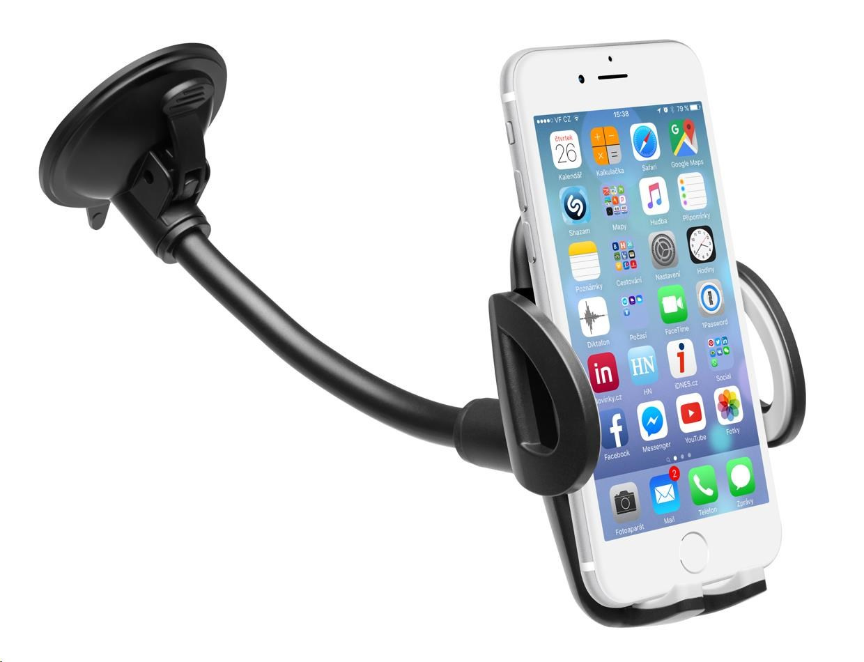 Akční nabídky na váš e-mailUniverzální držák do auta slouží k uchycení mobilního telefonu na sklo nebo palubní desku vozu.