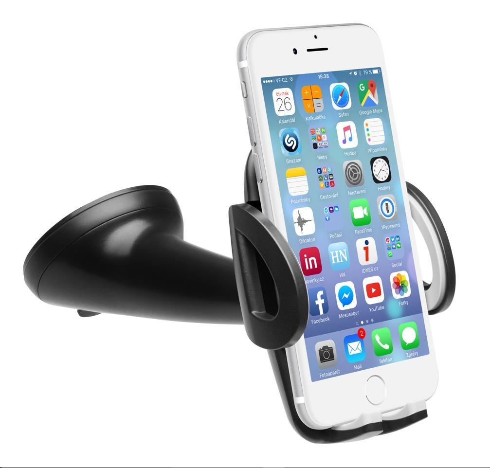 Akční nabídky na váš e-mailUniverzální držák do auta slouží k uchycení mobilního telefonu na sklo nebo palubní desku vozu.