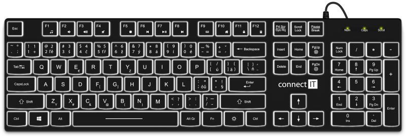 Popis CONNECT IT kancelářská podsvícená klávesnice Chocolate WhiteStar, CZ + SK verze, černá