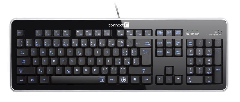 Popis CONNECT IT Klávesnice CI-45 s LED podsvícením, USB