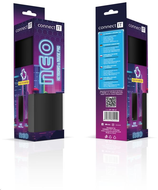Na kvalitní a stylové podložce CONNECT IT NEO se projeví pozitivní vlastnosti vaší myši. Moderní materiál, ze kterého je podložka vyrobena, poskytuje myši dobře snímatelný podklad i pro nejjemnější laserové snímání. Dvouvrstvý materiál kombinující protiskluznost na spodní straně a ideální vlastnosti pro myši na vrchní straně se výraznou měrou zaslouží o ideální poměr mezi kontrolou nad myší a skluzem.