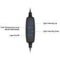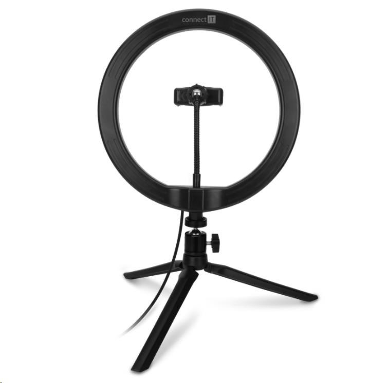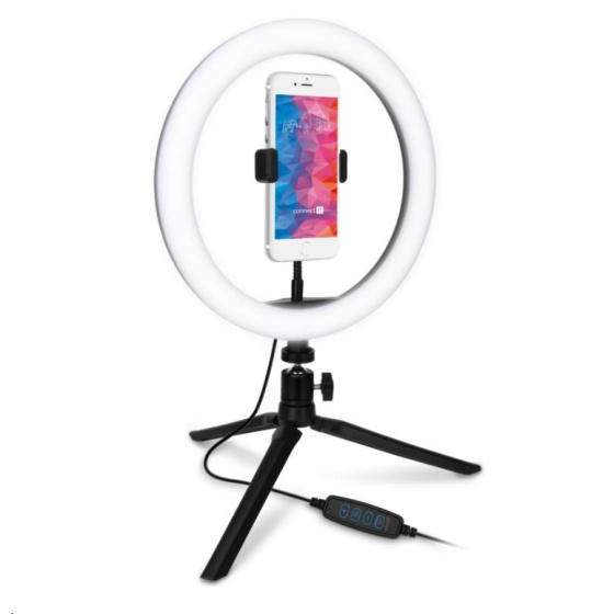 | Obsah balení | - Kruhové LED světlo - Přívodní kabel s dálkovým ovládáním - Flexibilní držák mobilního telefonu - Stativ s kulovou hlavou - Návod k obsluze |
