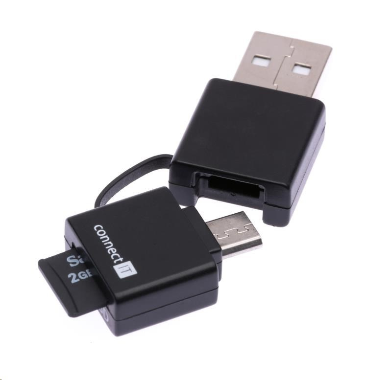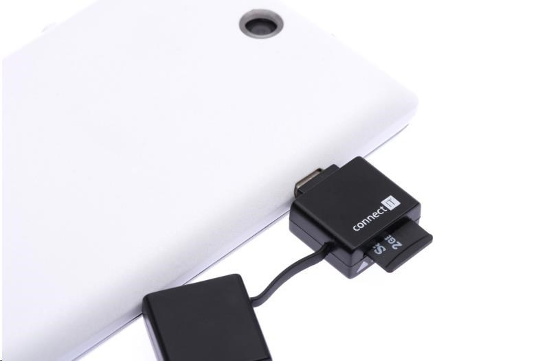 - Čtečka microSD karet pro smartphony / tablety s microUSB konektorem a podporou USB OTG a pro všechna zařízení s USB a podporou mass storage device (PC Windows, Linux, Mac OS)