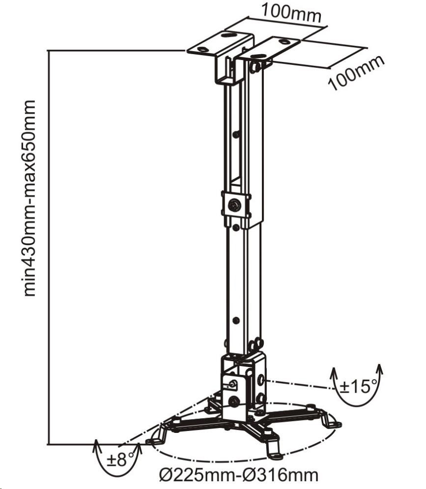 CONNECT IT Stropní držák projektoru P2 43-65cm, naklápěcí (±30°, max. 20kg)