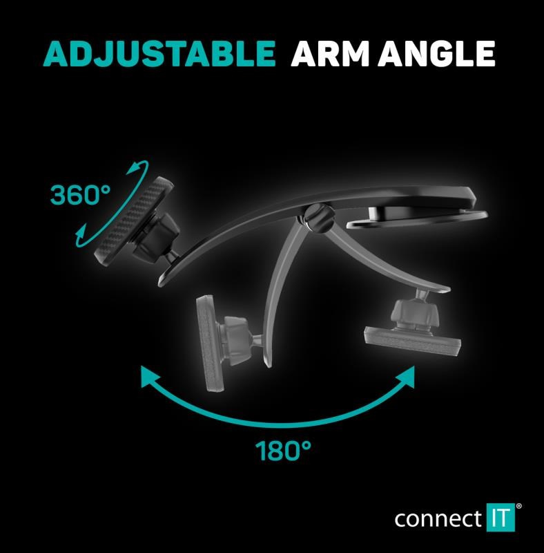Univerzální magnetický držák "InCarz ArmAngle" na palubní desku se speciální gelovou nano přísavkou "AnyGrip" a nastavitelným sklonem 0-180° na rameni s kloubem. Gelová přísavka drží i na strukturovaných palubních deskách, kde je uchycení běžnými držáky nemožné z důvodu nepřilnavosti povrchu. Přilnavost umocňuje 3M samolepka ve středu gelové přísavky. Čtyři ultrasilné magnety třídy N45 udrží telefon na držáku i při výrazných nerovnostech vozovky a vysokých rychlostech až do 350 km/h.