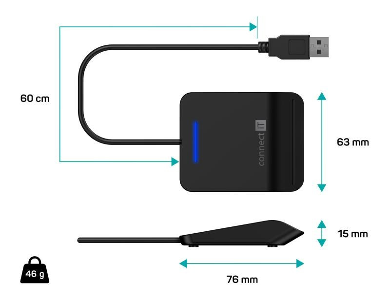Praktická externí čtečka eObčanských průkazů Vám umožní připojit se k účtům státní správy ať jste kdekoliv. Je kompatibilní s bankovními čipovými kartami a většinou smart karet. Používá zpětně kompatibilní rozhraní USB 2.0, díky němuž je zajištěn bezproblémový a rychlý přenos dat mezi zařízeními. Podporuje eObčanky s čipem a bankovní čipové karty. UPOZORNĚNÍ !!! Ke čtečce je potřeba si stáhnout program eObčanka z portálu státní správy (ke stažení zde: https://info.eidentita.cz/Download/Default.aspx). Program je k dispozici zcela zdarma a bez tohoto programu nebude čtečka fungovat.