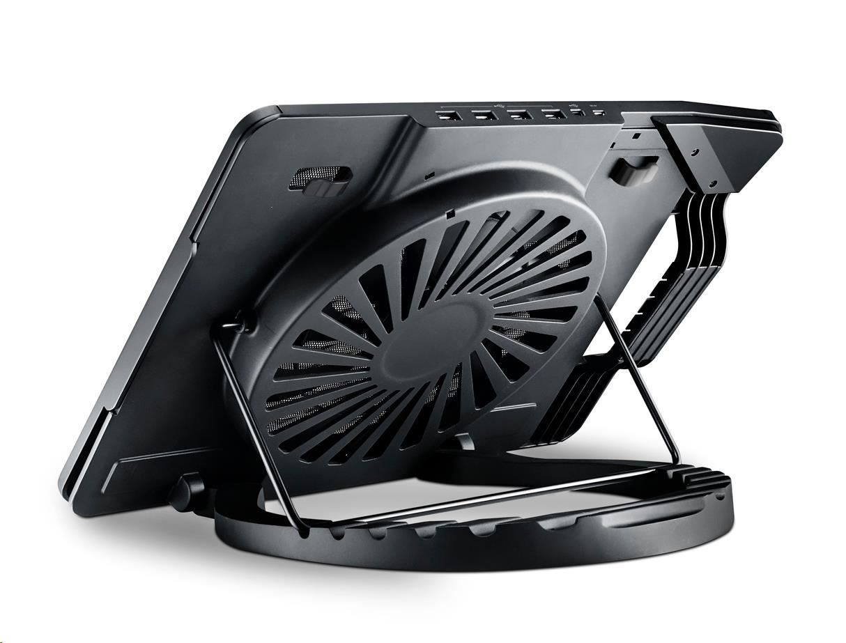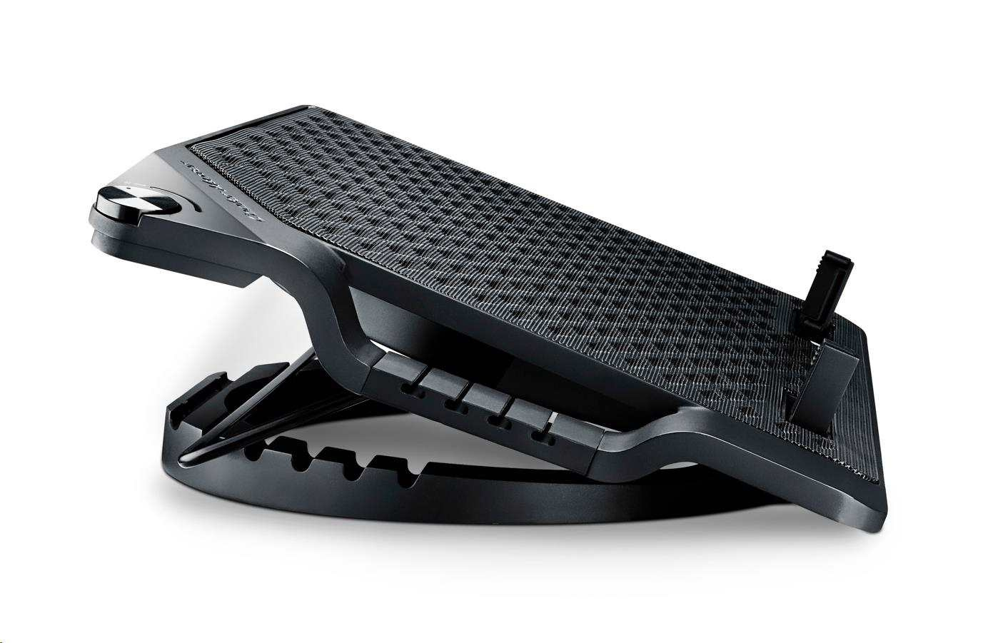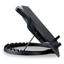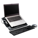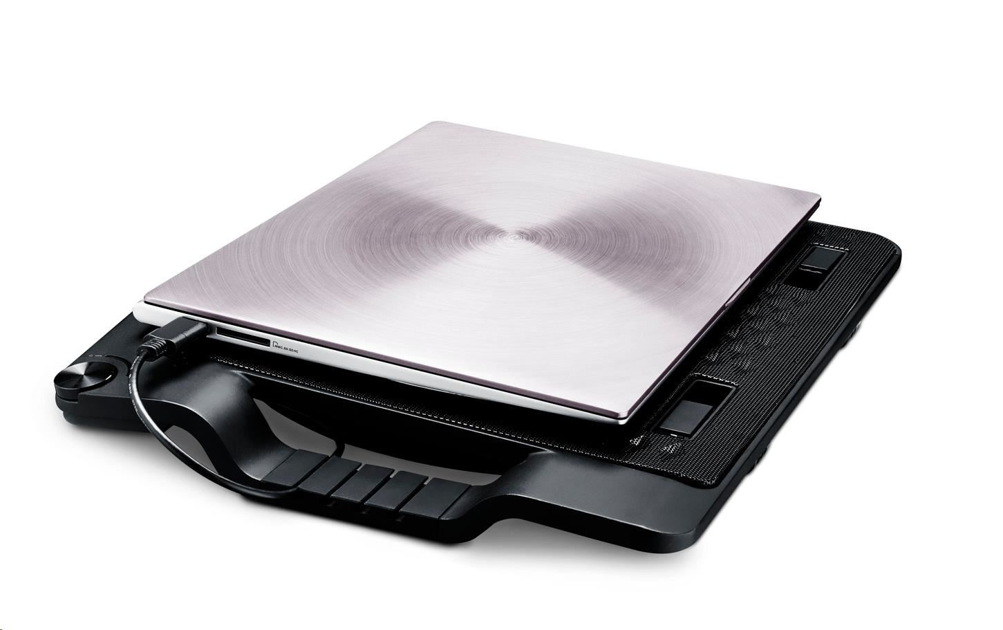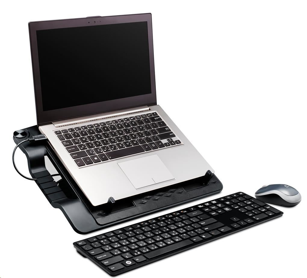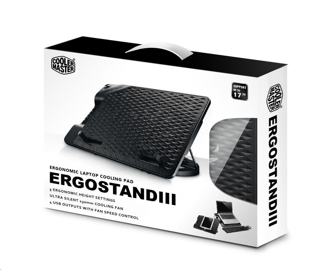 Akční nabídky na váš e-mailThe ERGOSTAND III is an ergonomic laptop cooling stand that will make using your laptop fun and uplift your business productivity. A large 230mm ultra silent fan with all new Loop Dynamic Bearing and exclusive fan blade design provides better air dissipation, ultra low noise, and longer lifespan to increase laptop performance. Removable front plate enables quick cleaning to sustain high performance. 6 Ergonomic height settings let you quickly choose the ideal angle to relieve neck and shoulder pain. Grooves and hooks keep wires clean and tidy while the USB hub expands one laptop port into four (4). Compatible with 17” laptops and tablets by adjustable anti-slip holders.