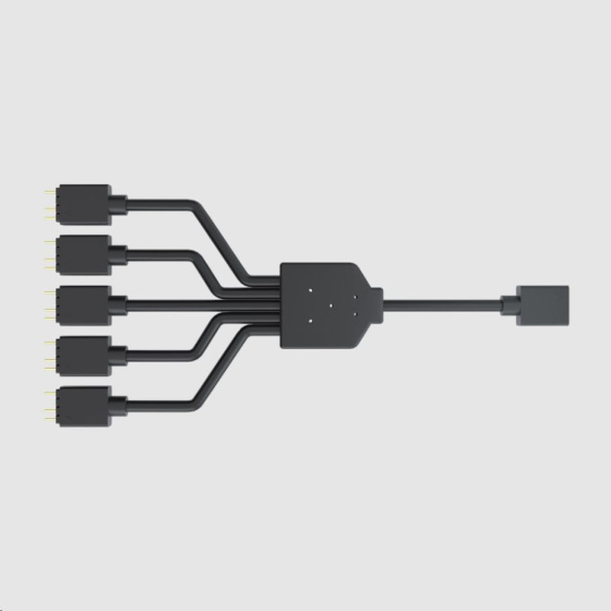 Akční nabídky na váš e-mail3-pinový konektor 1-na-5 adresovatelný RGB Rozdělovací kabel pro adresovatelné RGB ventilátory MasterFan. Kompatibilní se základními deskami ASUS, MSI, GIGABYTE a ASROCK s adresovatelným RGB. Celková délka 58 cm.