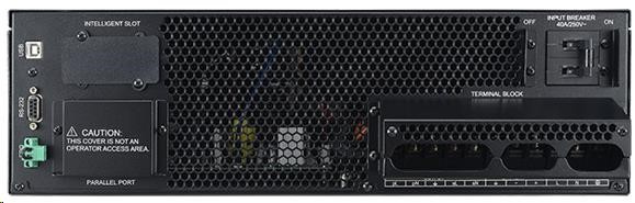 | Dodávka obsahuje | UPS + bateriový modul; kryt Vstup/Výstup Terninal bloku ; uživatelská příručka; telefonní kabel; PowerPanel®Business Edition software CD; USB kabel typ A+B; kolejnice pro uchycení v racku; konzola pro montáž do racku (2+2); spojovací plát (2); lyžiny (2+2); sériový kabel; napájecí kabel; montážní sada |