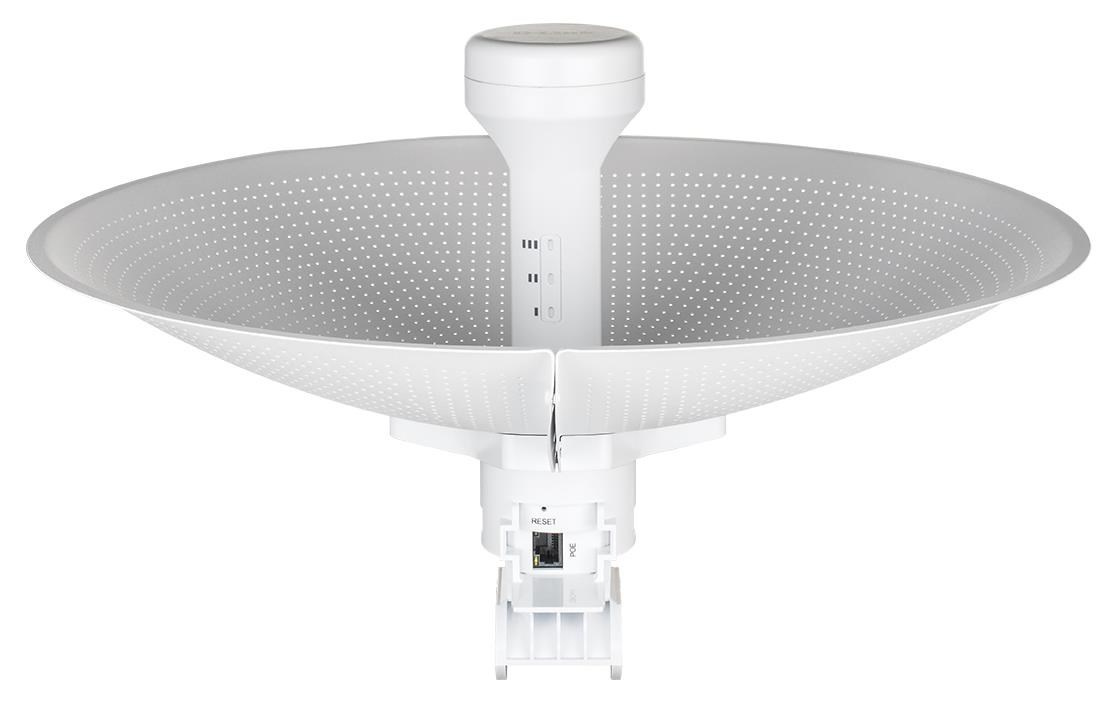 Venkovní Wi-Fi přístupový bod D-Link DAP-3712 s parabolickou 23 dBi směrovou anténou poskytuje spolehlivé řešení pro venkovní bezdrátové sítě. Pracuje v pásmu 5GHz s maximální rychlostí až 867 Mb/s (802.11ac 2x2). Lze provozovat v režimech přístupový bod (Access Point, AP), bezdrátový klient nebo v režimech WDS AP a WDS klient pro vytvoření bridge spojů v topologiích bod-bod (Point-to-Point, PtP) nebo bod-multibod (Point-to-Multipoint, PtMP) na vzdálenost až 20km. Je navržen především pro poskytovatele bezdrátového internetu (Wireless ISP), kterým umožňuje rychlou a cenově efektivní distribuci internetu pro připojení zákazníků. Specifikace: • Wi-Fi 5 single-band 5 GHz, 802.11a/n/ac 2x2, max. 867 Mb/s • 1x 100/1000 Mb/s RJ-45 port • LED indikace: síla signálu • Parabolická směrová anténa 23 dBi, vyzařovací úhel 10° H, 10° V • Provozní režimy: access point, wireless client (station), WDS AP, WDS klient • Bridge topologie bod-bod nebo bod-multibod, dosah až 20km • Maximální vysílací výkon 27 dBm, možnost nastavení vysílacího výkonu • Provozní pásma: 5180~5320 MHz, 5745~5825 MHz, šířka pásma 20/40/80 MHz • Podpora TDMA technologie • Wi-Fi šifrování 802.11i 128-bit AES Personal / Enterprise • Správa: webové rozhraní • 1x SSID, možnost skrýt vysílání SSID • SSID VLAN, Management VLAN • Funkce: izolace klientů, omezení rychlosti, omezení max. počtu klientů • QoS: Traffic Shaping, QoS Priority, WMM, IP Filter, MAC filter • Provedení ABS plast, stupeň krytí IP66 • Provozní teploty od -40°C do +65°C • Napájení: aktivní PoE+ dle 802.3at, 48V PoE injektor součástí dodávky • Max. spotřeba 15W • 8 kV ESD přepěťová ochrana • Hmotnost: 900g • Rozměry: 372 x 372 x 241 mm.
