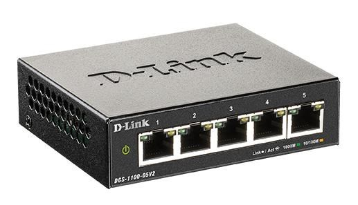 Popis D-Link DGS-1100-05V2 5-port Gigabit Smart Managed switch, fanless