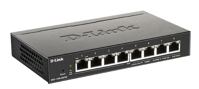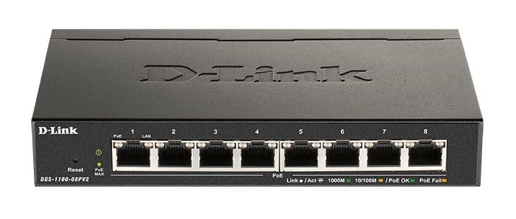 Popis D-Link DGS-1100-08PV2 8-port Gigabit Smart Managed PoE switch, PoE budget 64W, fanless